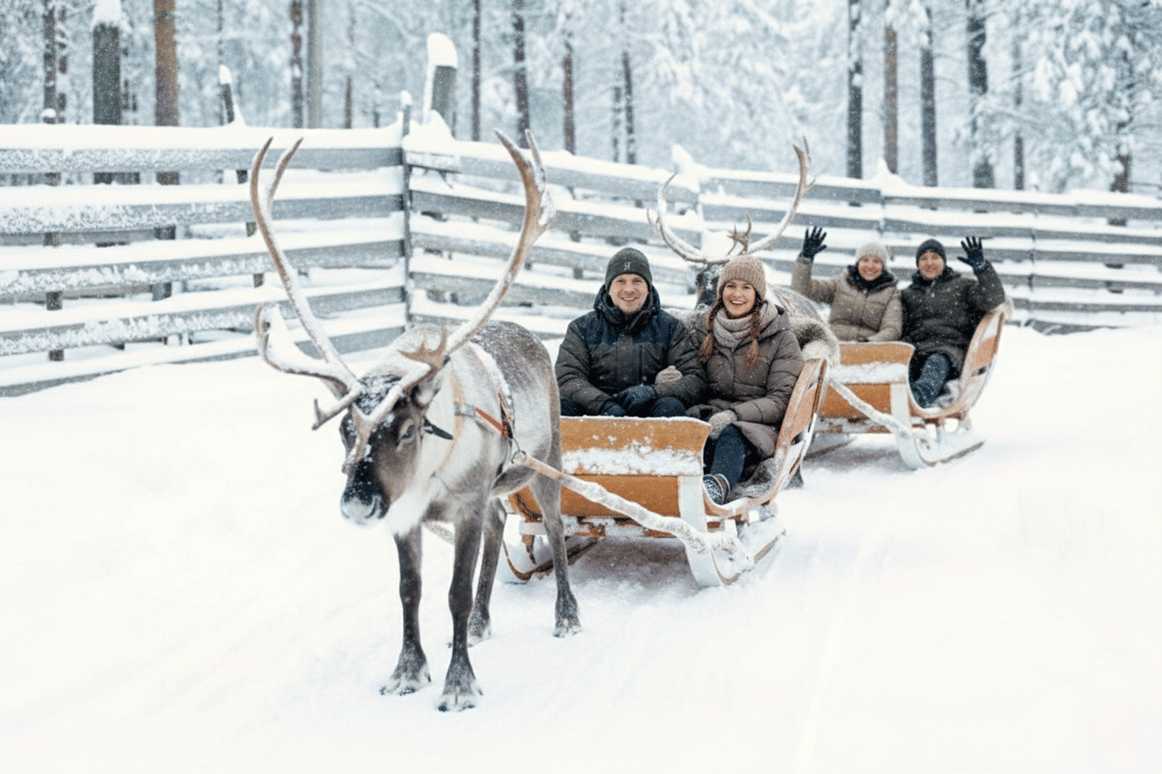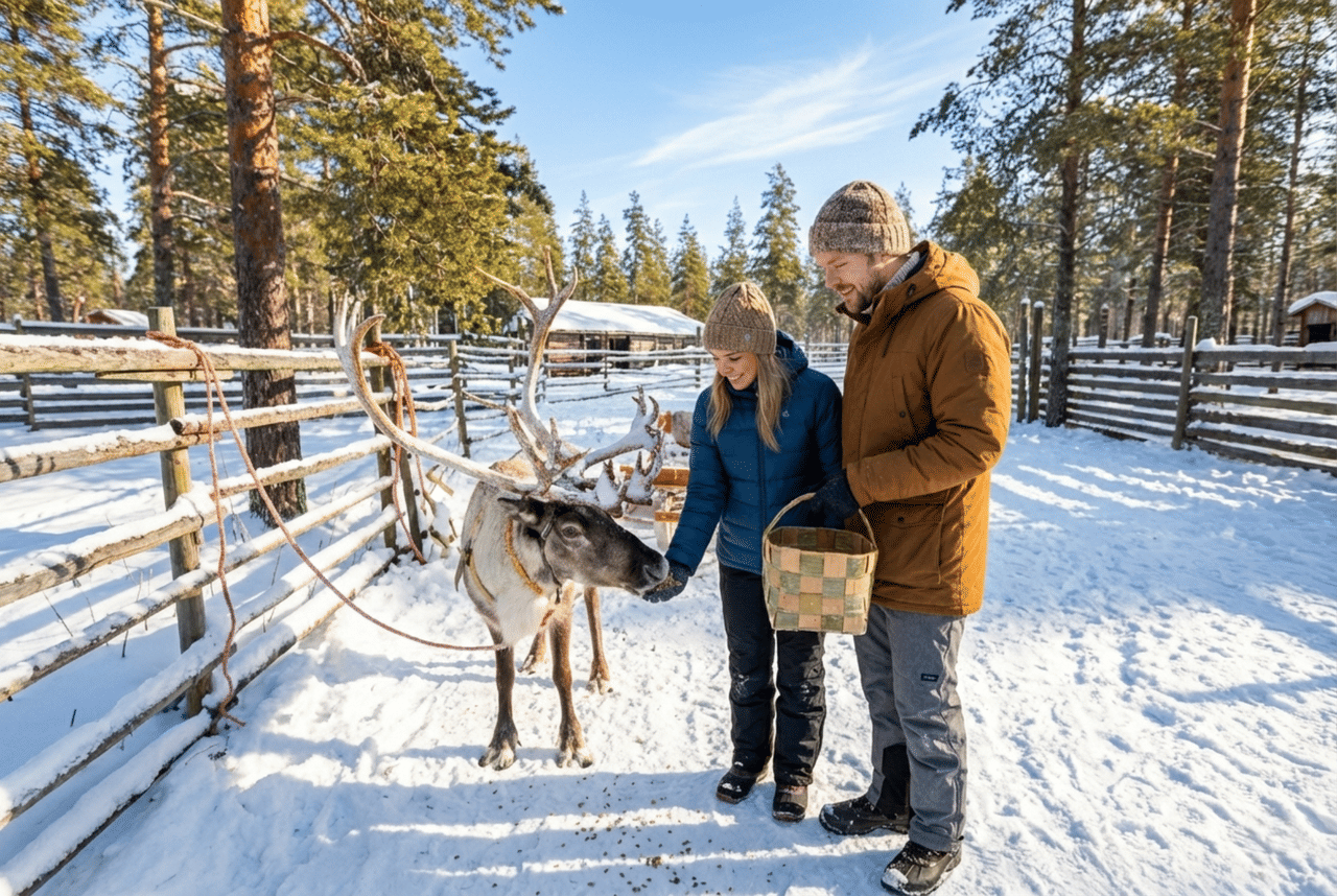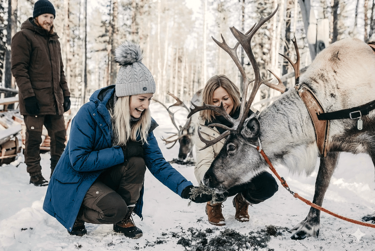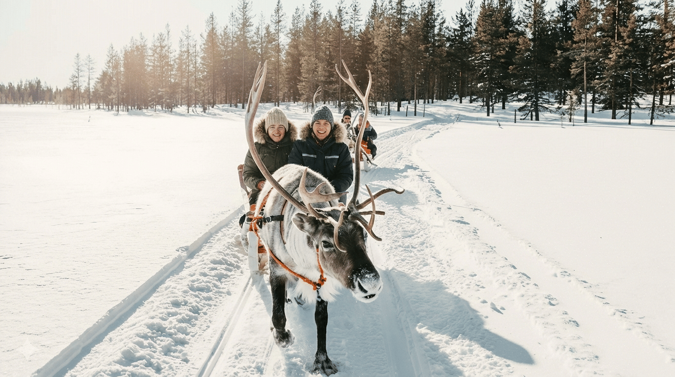 Meet reindeer and enjoy a relaxing reindeer safari ride through a serene forest